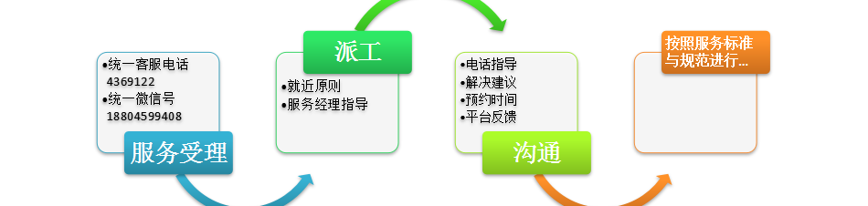 7、統(tǒng)一派工平臺(tái)由統(tǒng)一受理電話、微信報(bào)修號碼、客服人員組成,代表公司的統(tǒng)一受理與調(diào)度。